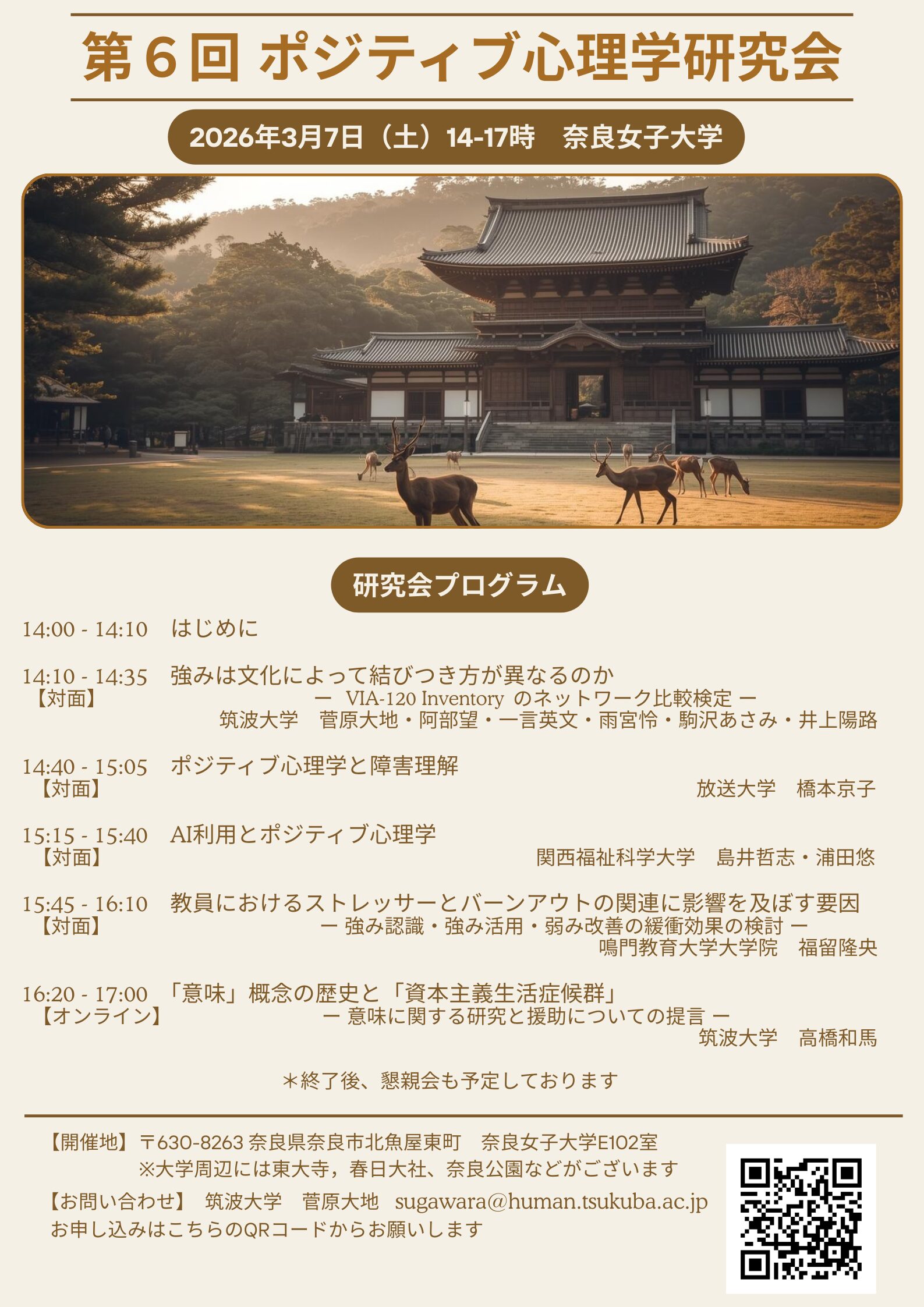 私は、筑波大学人間系において、「臨床心理学」「感情心理学」「ポジティブ心理学」を中心とした研究と、プロセス・ベースド・セラピーの理念に基づいた臨床活動および臨床指導を行っています。